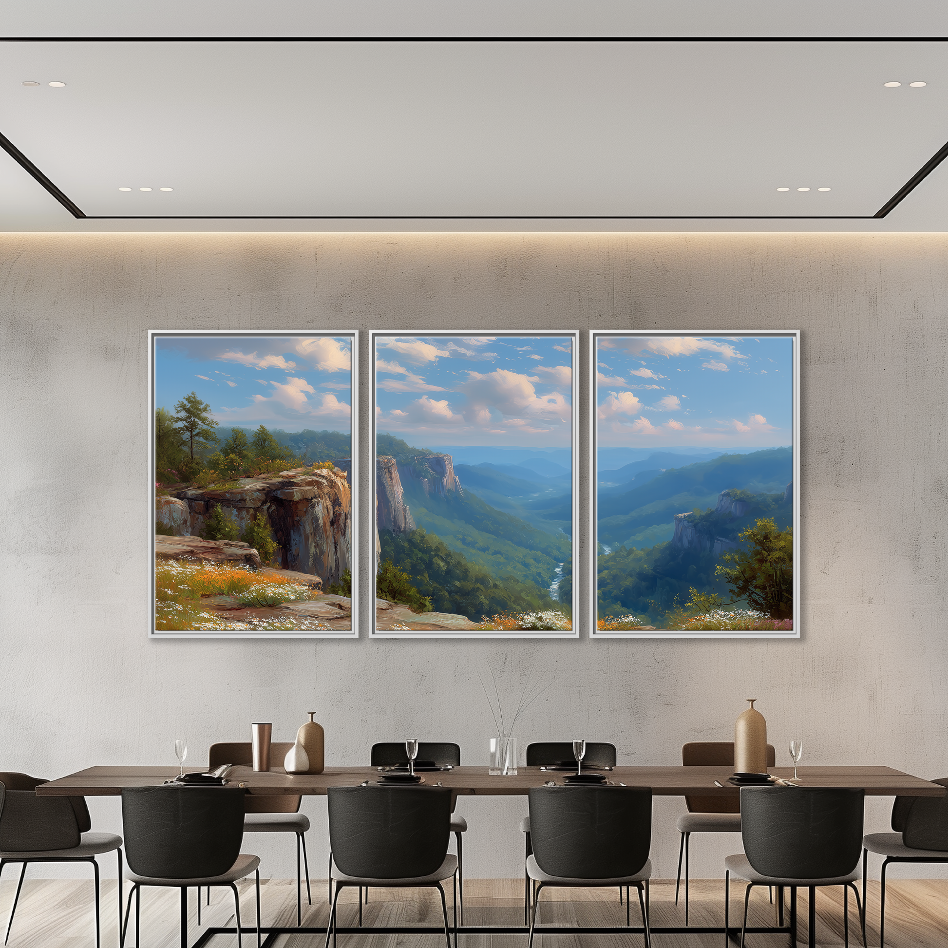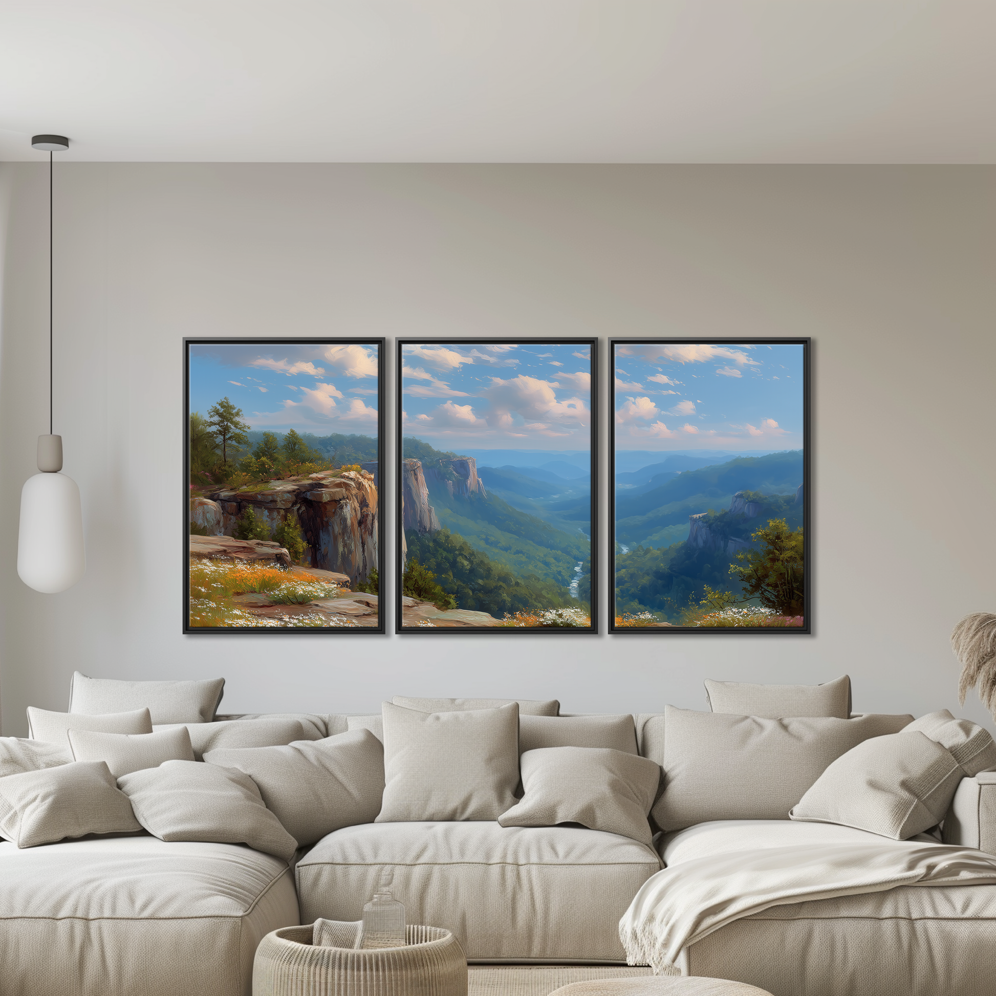 Immerse yourself in the serene beauty of the Appalachian highlands with this stunning canvas wall art capturing the Cumberland Plateau's majestic cliffs and vibrant wildflowers. Inspired by the lush mountain meadows and sweeping valley views of Tennessee, this piece brings a touch of southern wilderness into any space. Perfect for lovers of Appalachian prints, scenic valley views, and nature-inspired décor, it evokes the peaceful spirit of the American highlands.