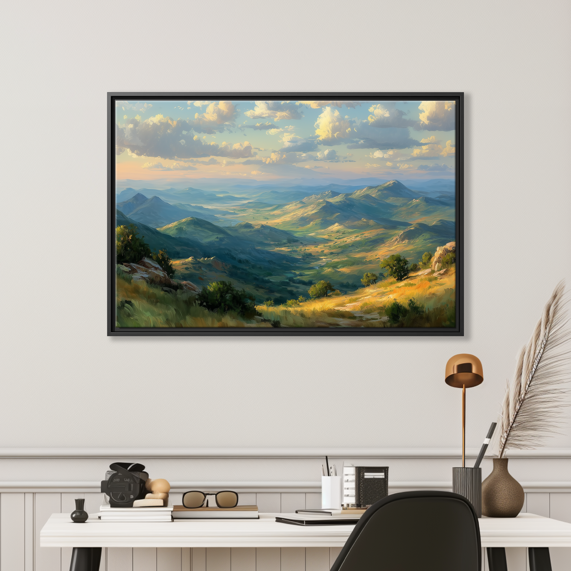 Discover the serene beauty of the Davis Mountains captured in this stunning desert landscape art, perfect for bringing a touch of the Southwest into your home. Inspired by the golden hour light that bathes the emerald valleys and rugged terrain, this piece celebrates the unique vistas of West Texas. Whether you’re a Big Bend print collector or seeking rustic hill scenery to enhance your ranch or mountain decor, this artwork invites you to experience a beautiful adventure every day.
