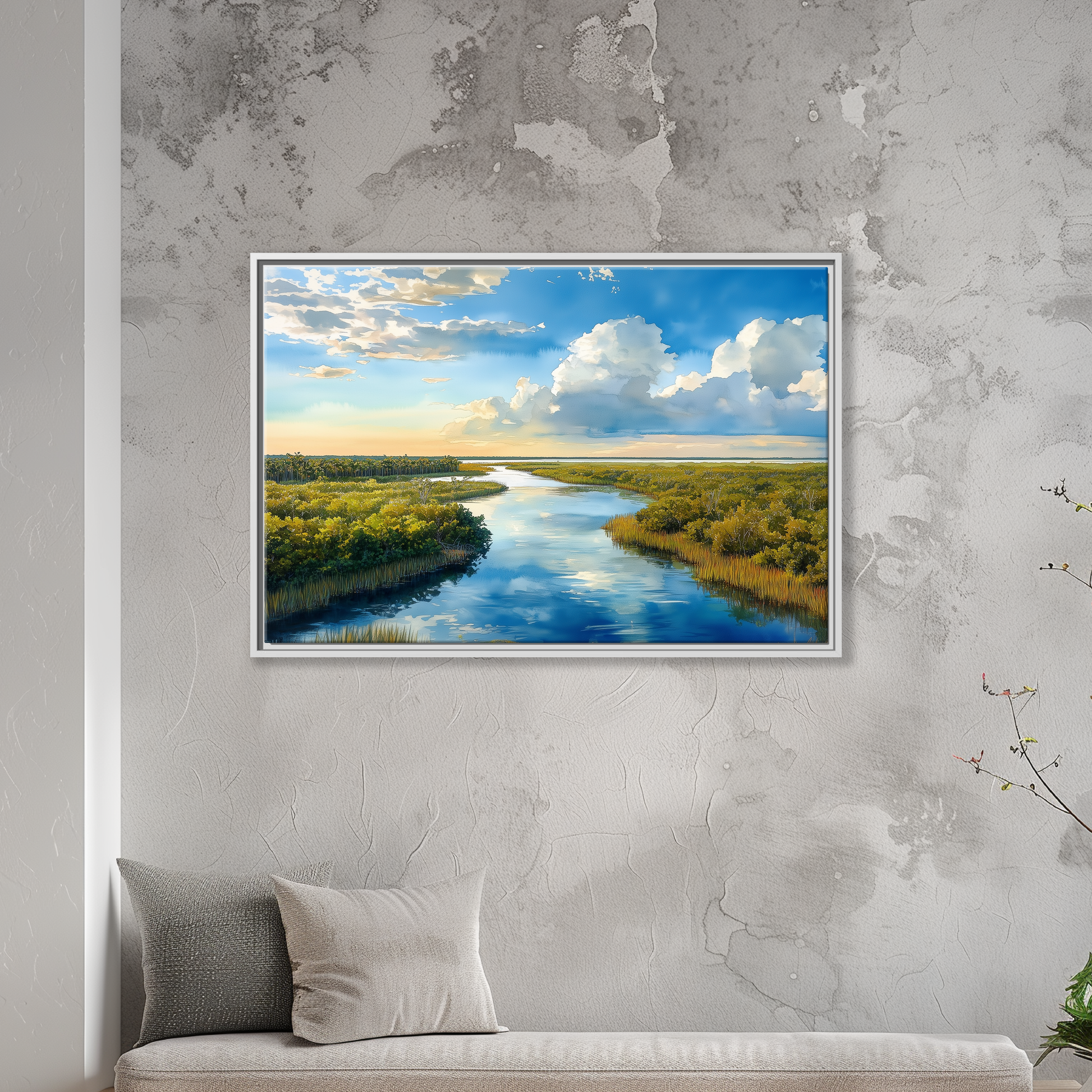 Showcase the wild landscapes of Florida with this Everglades print. Featuring wetlands, wildlife, and subtropical beauty, it’s perfect for travelers, birdwatchers, and outdoor enthusiasts. A timeless design that highlights America’s unique ecosystem.