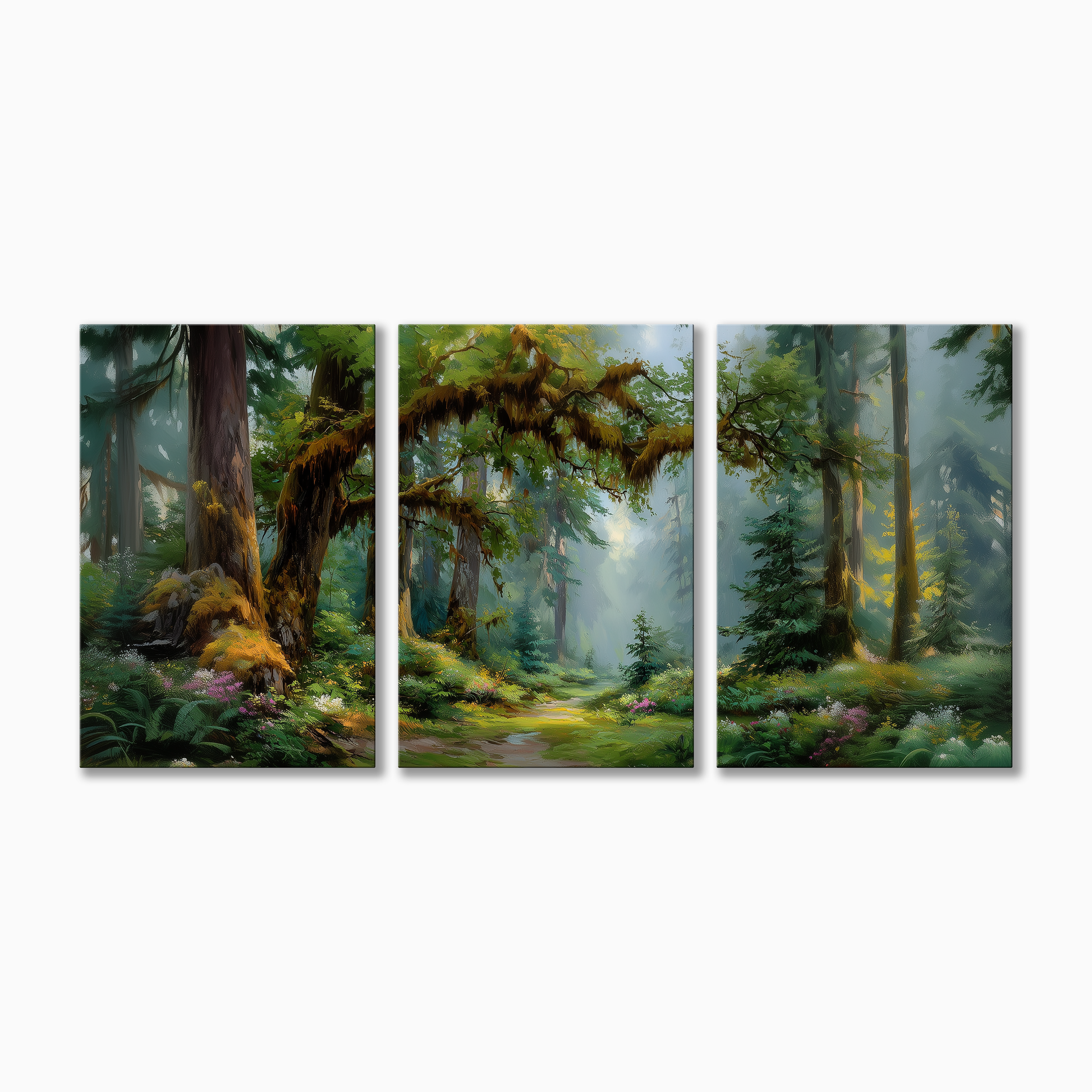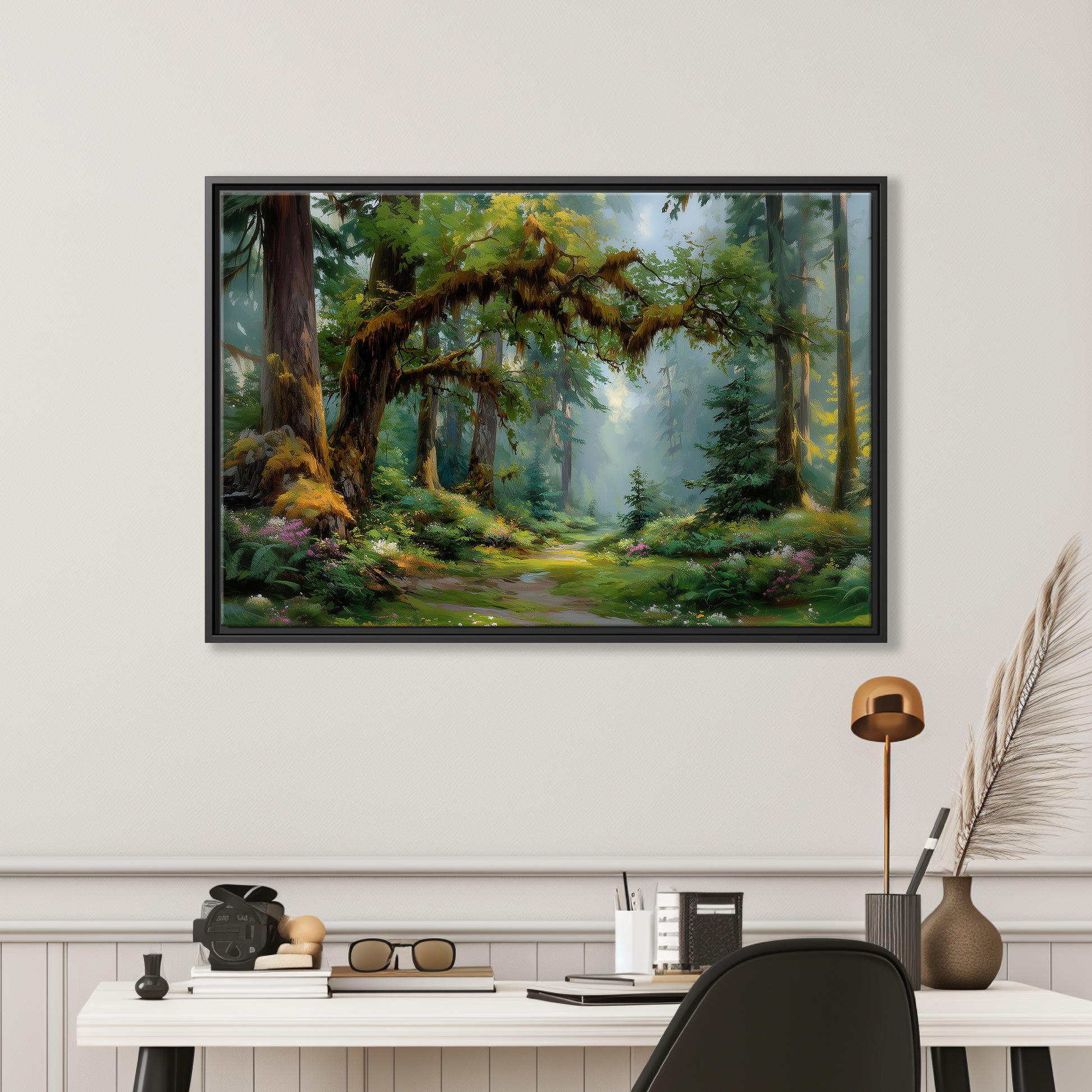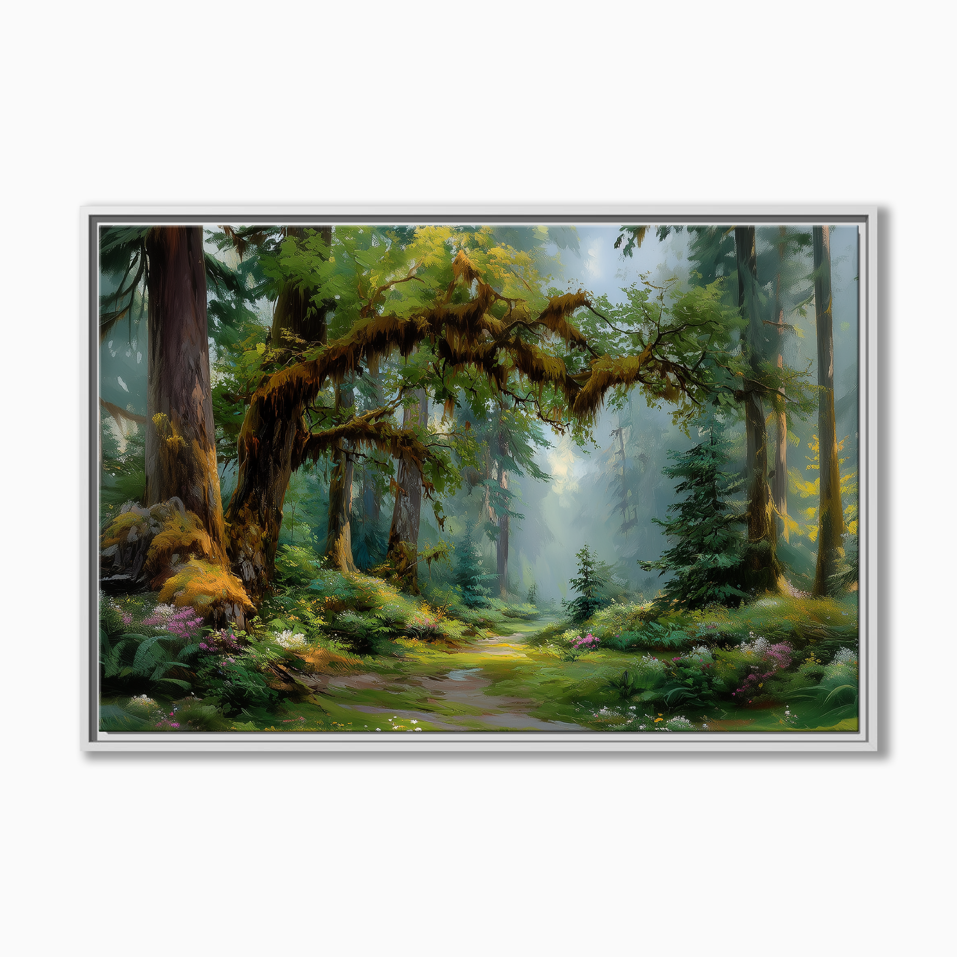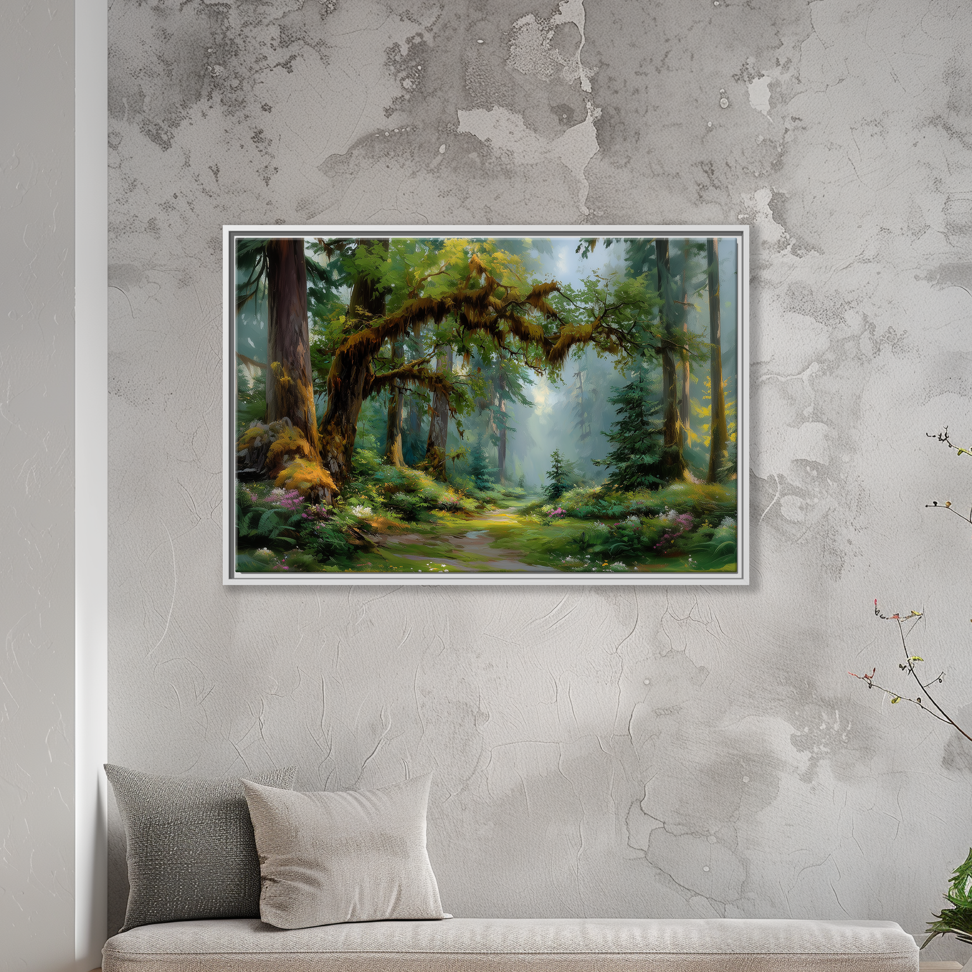 Step into the serene world of the Hoh Rainforest with this captivating artwork that brings the Pacific Northwest's lush temperate rainforest right into your home. Inspired by Washington's moss-covered trees and ethereal sunlight filtering through ancient canopies, this piece is perfect for those who cherish national park decor and seek a nature sanctuary vibe. Whether you’re decorating a cabin wall or creating a tranquil meditation space, this canvas invites you to experience the emerald green design and wildflower landscape of one of America’s most magical forests.