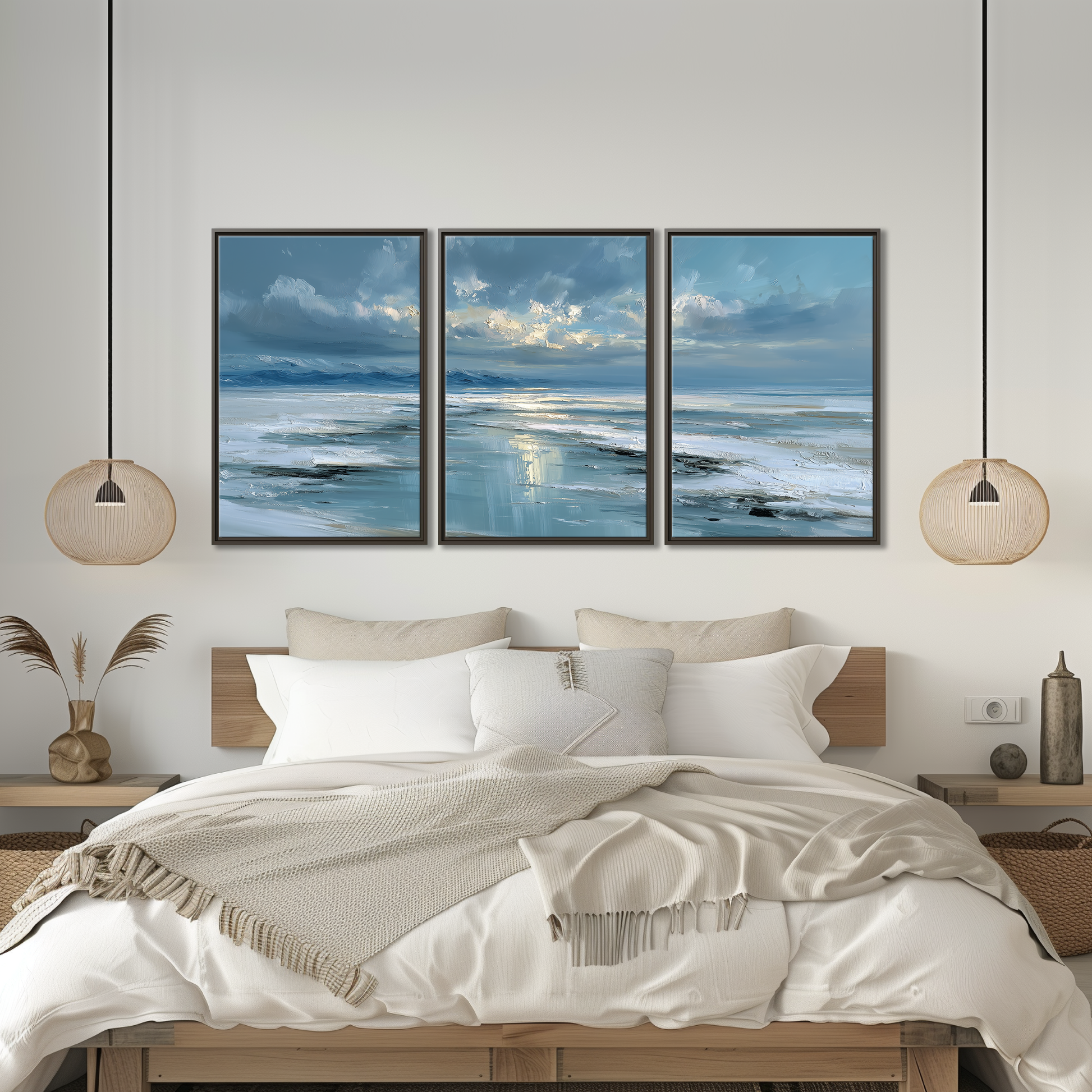 Immerse yourself in the captivating allure of this stormy seascape, where dramatic ocean art meets the serene beauty of breaking clouds over icy blue waters. Inspired by the raw power of nature, this coastal canvas set brings a moody landscape to life with golden light that dances across a winter lake scene. Perfect for anyone seeking to add a contemporary print with emotional depth and coastal charm to their living space.