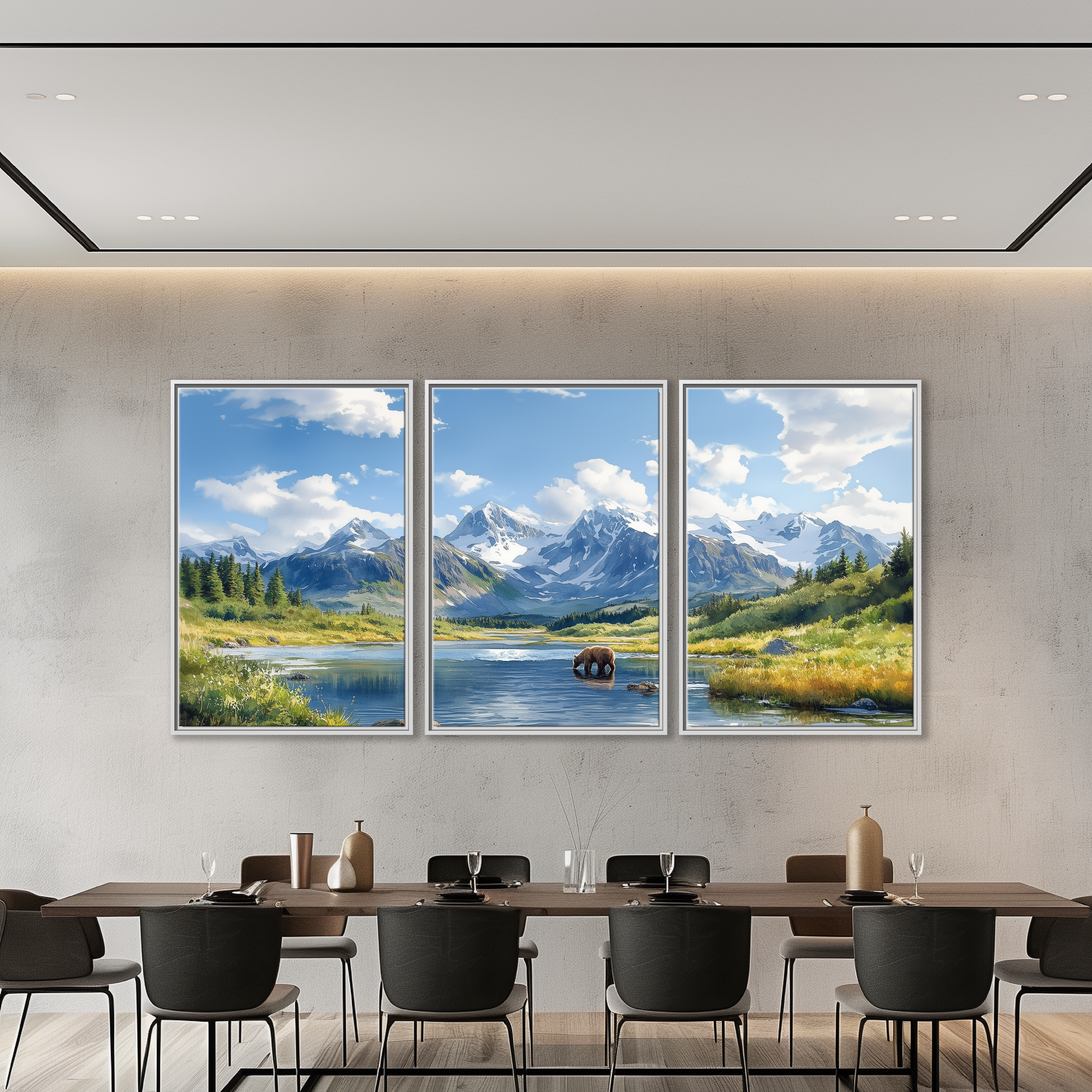 Highlight Alaska’s wild terrain with this Katmai print. Featuring mountains, rivers, and the iconic home of brown bears, it’s perfect for travelers and nature enthusiasts. A bold and striking design for any wall.