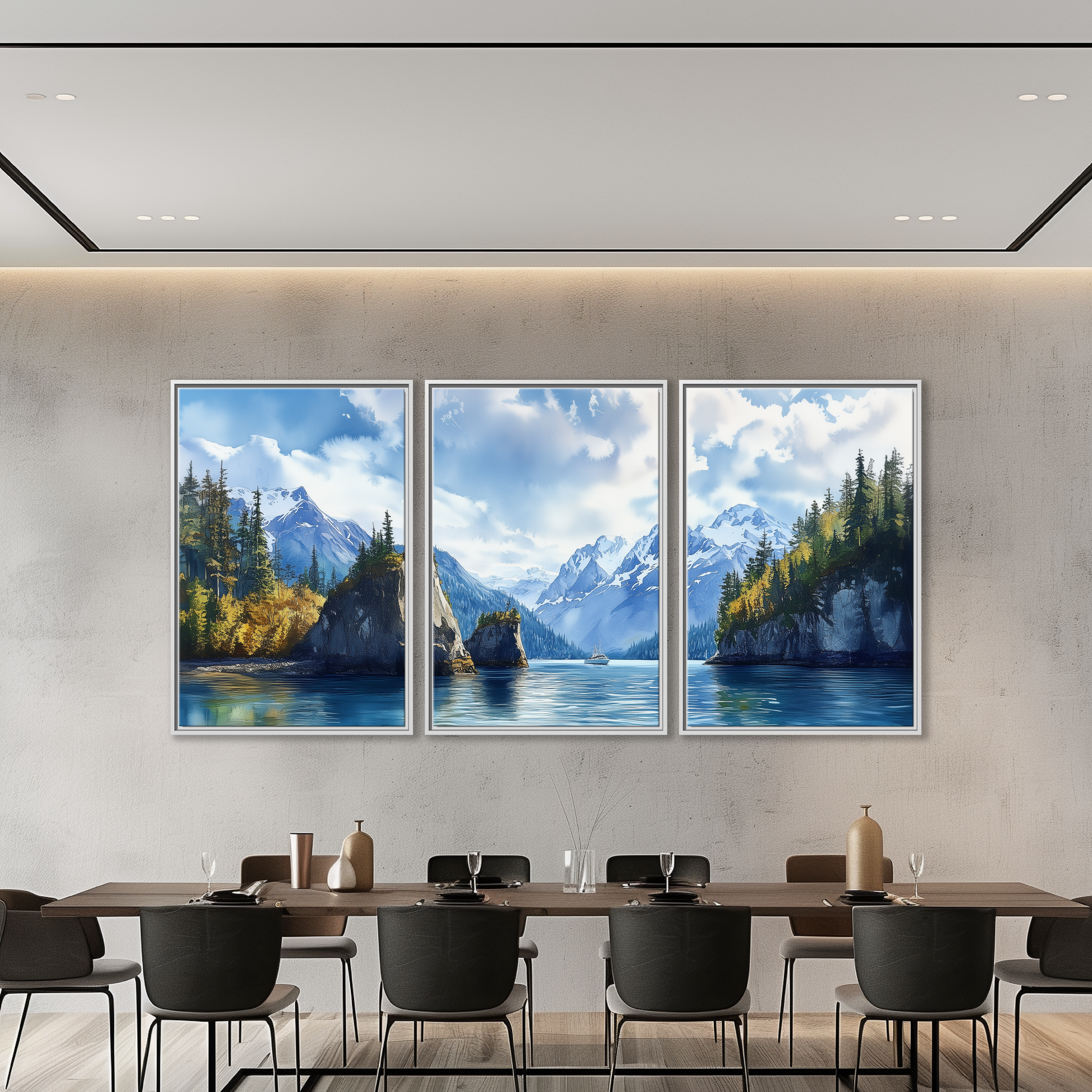 Showcase Alaska’s coastal beauty with this Kenai Fjords print. Featuring dramatic glaciers, rugged cliffs, and ocean waters, it’s perfect for travelers, adventurers, and fans of marine landscapes. A clean, modern piece that fits any space.