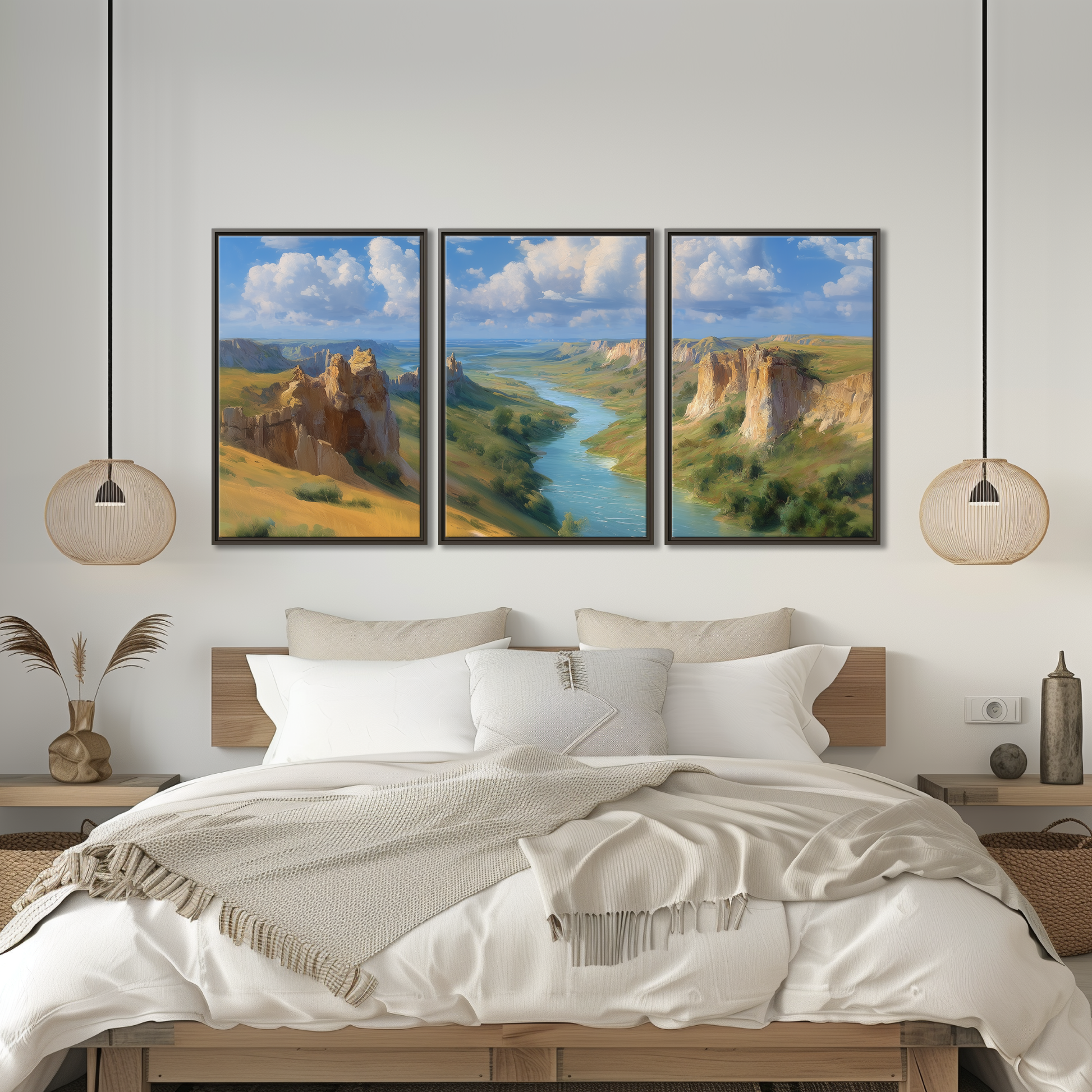 Immerse yourself in the rugged beauty of Montana with this stunning Missouri River Valley canvas print, inspired by the dramatic sandstone cliffs and sweeping vistas of the western badlands. Perfectly capturing the essence of outdoor adventure and rustic cabin decor, this piece brings a touch of nature’s grandeur right into your home. Whether you’re a nature lover or seeking a unique Montana landscape artwork, this canvas offers a breathtaking panorama that celebrates the deep valley and striking blue sky.