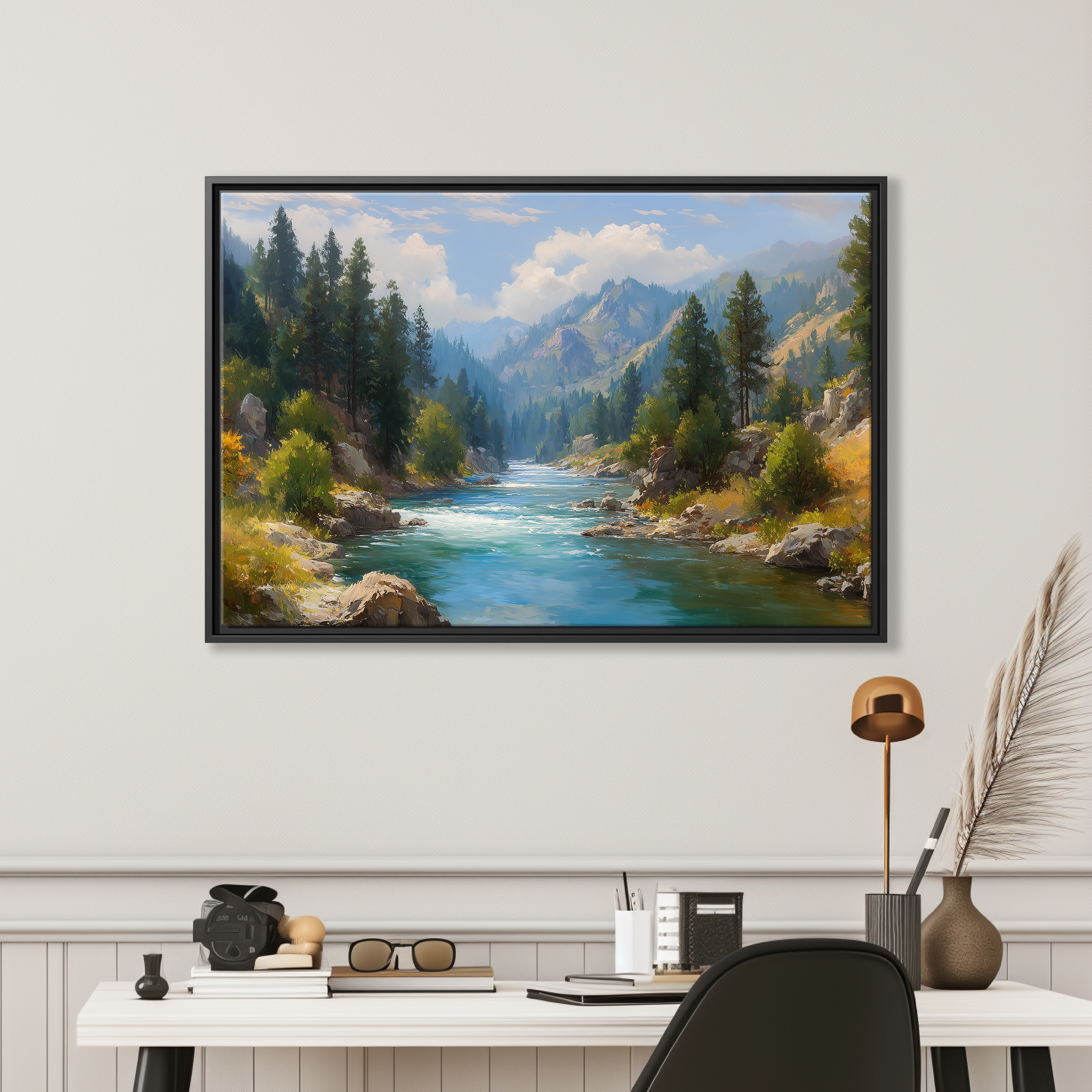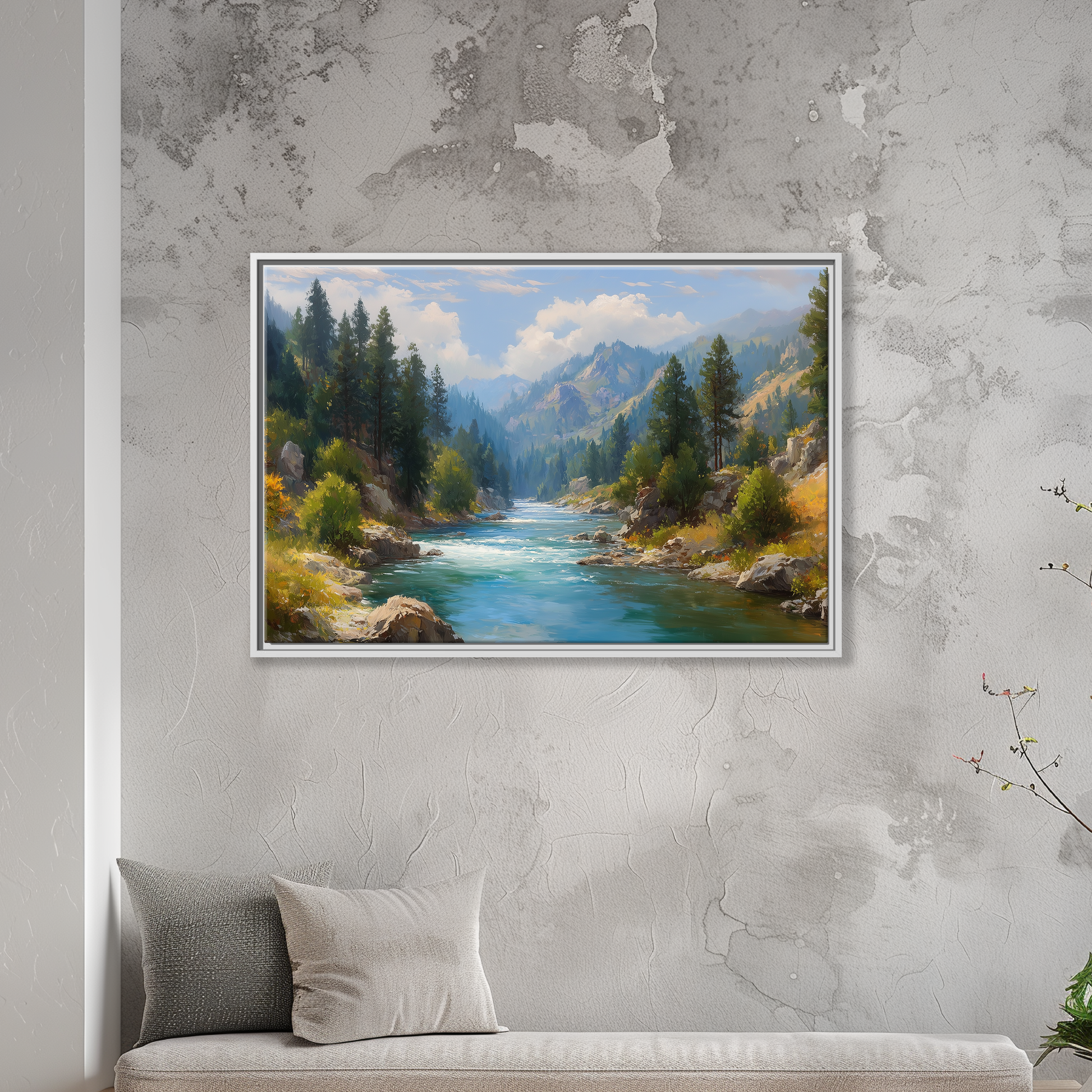 Immerse yourself in the tranquil beauty of Idaho's wilderness with this stunning Payette River print, capturing the serene turquoise waters and rushing whitewater rapids that define the landscape. Perfect for enhancing any outdoor retreat or nature-inspired space, this pine forest canvas brings the peaceful essence of the stream valley into your home. Inspired by the pristine forest canyon scenery, this artwork invites fly fishing enthusiasts and mountain lovers to experience Idaho’s natural splendor every day.