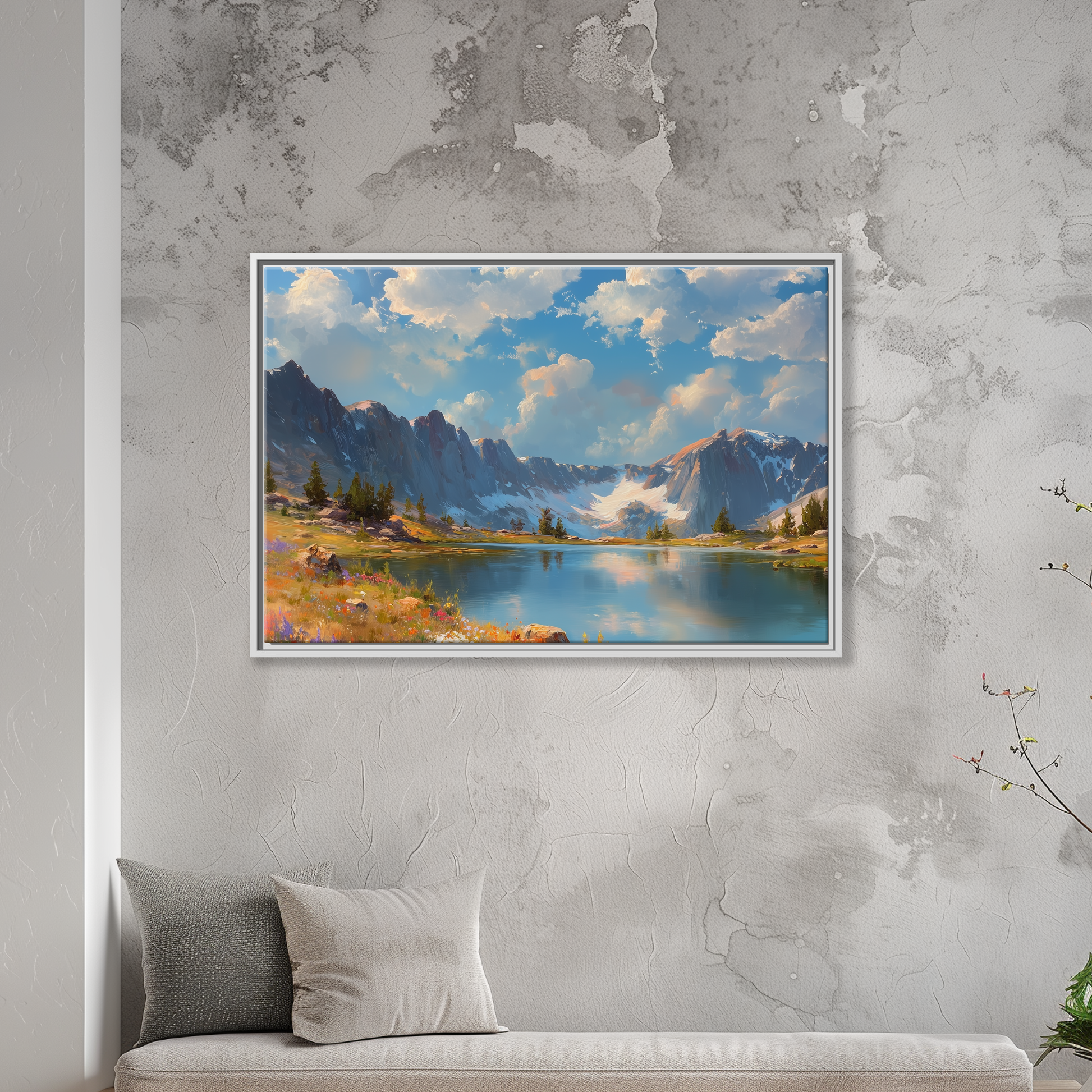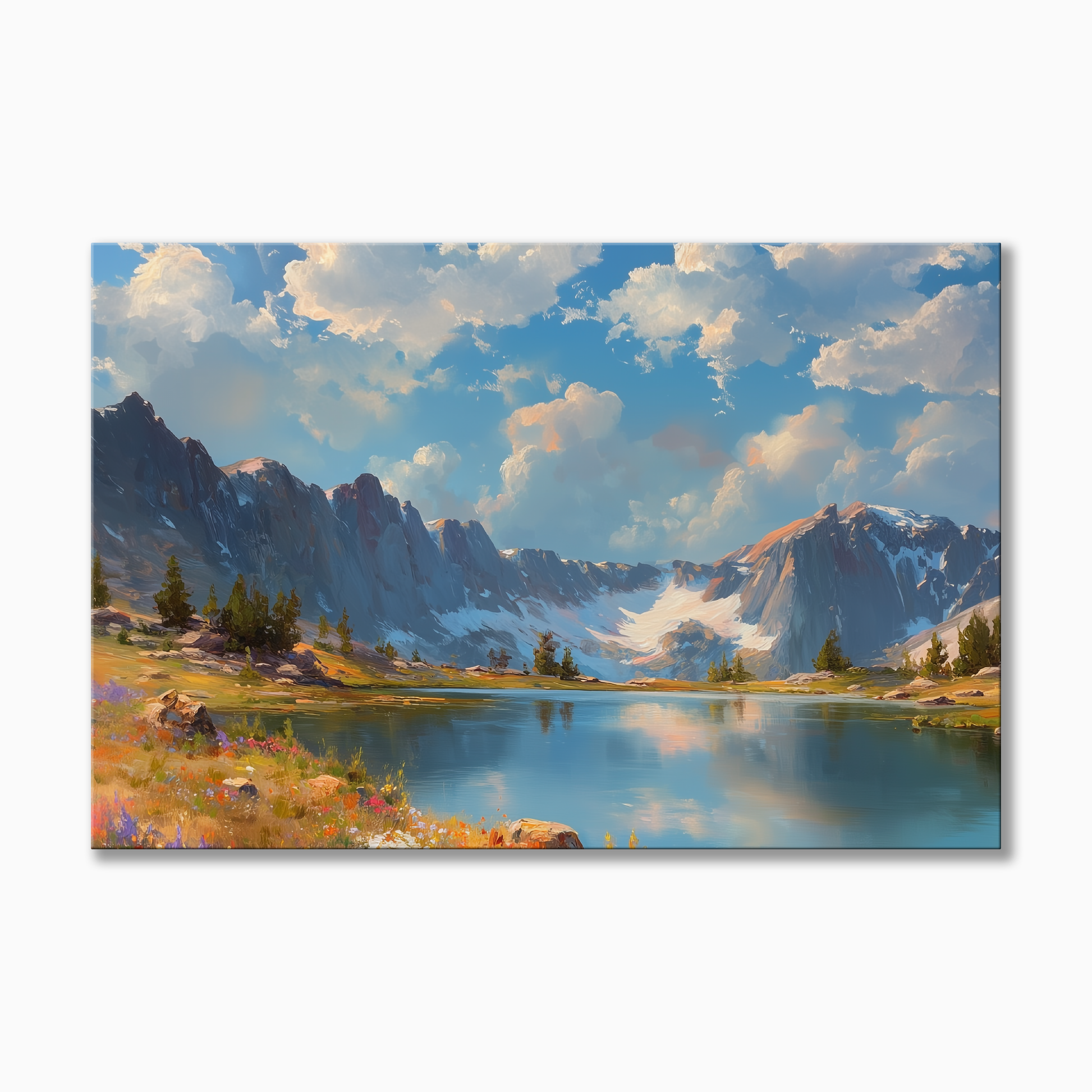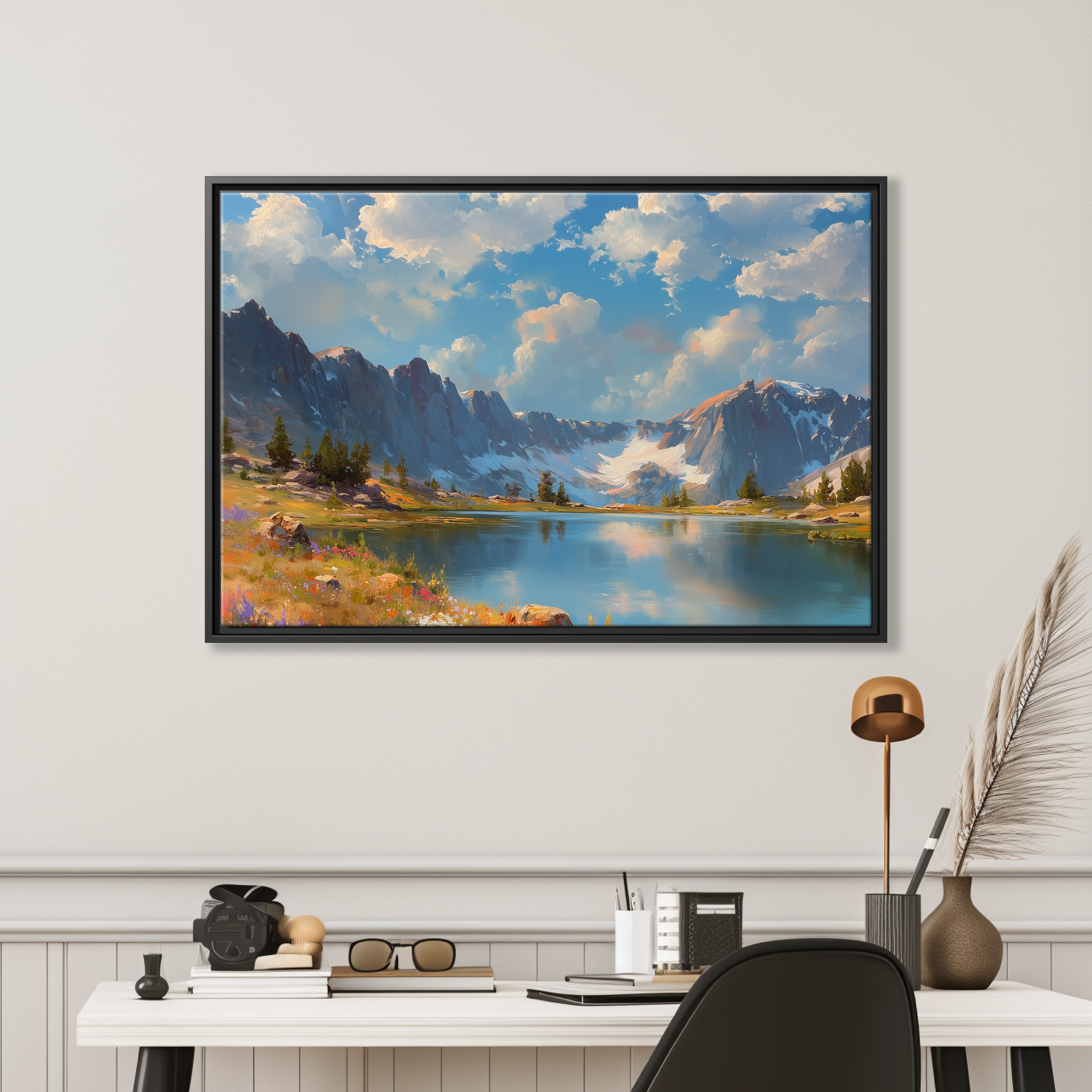 Immerse yourself in the serene beauty of the Snowy Range with this exquisite canvas wall art, capturing the essence of Wyoming landscape in stunning detail. Inspired by the Medicine Bow Alpine wilderness, this piece brings to life a tranquil mountain lake surrounded by jagged granite cliffs and vibrant wildflower meadows. Perfect for those who cherish glacier carved land and seek a nature gift idea that evokes peaceful reflections and alpine splendor.