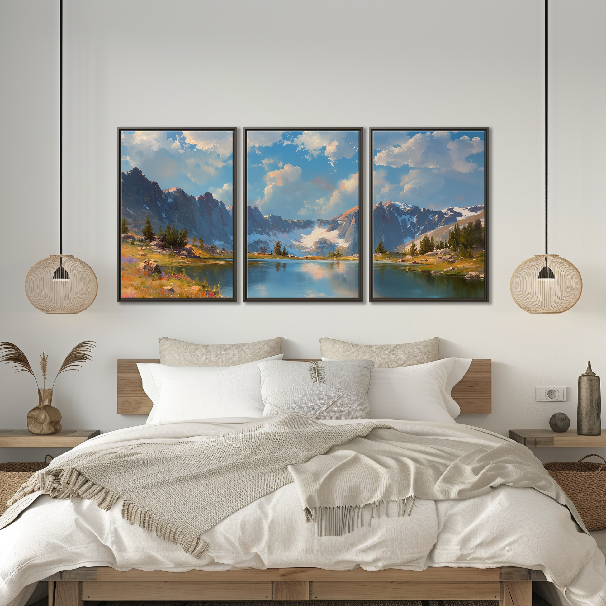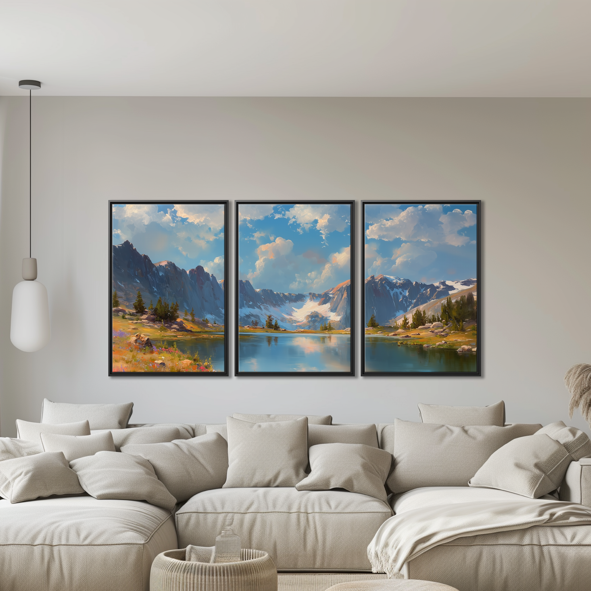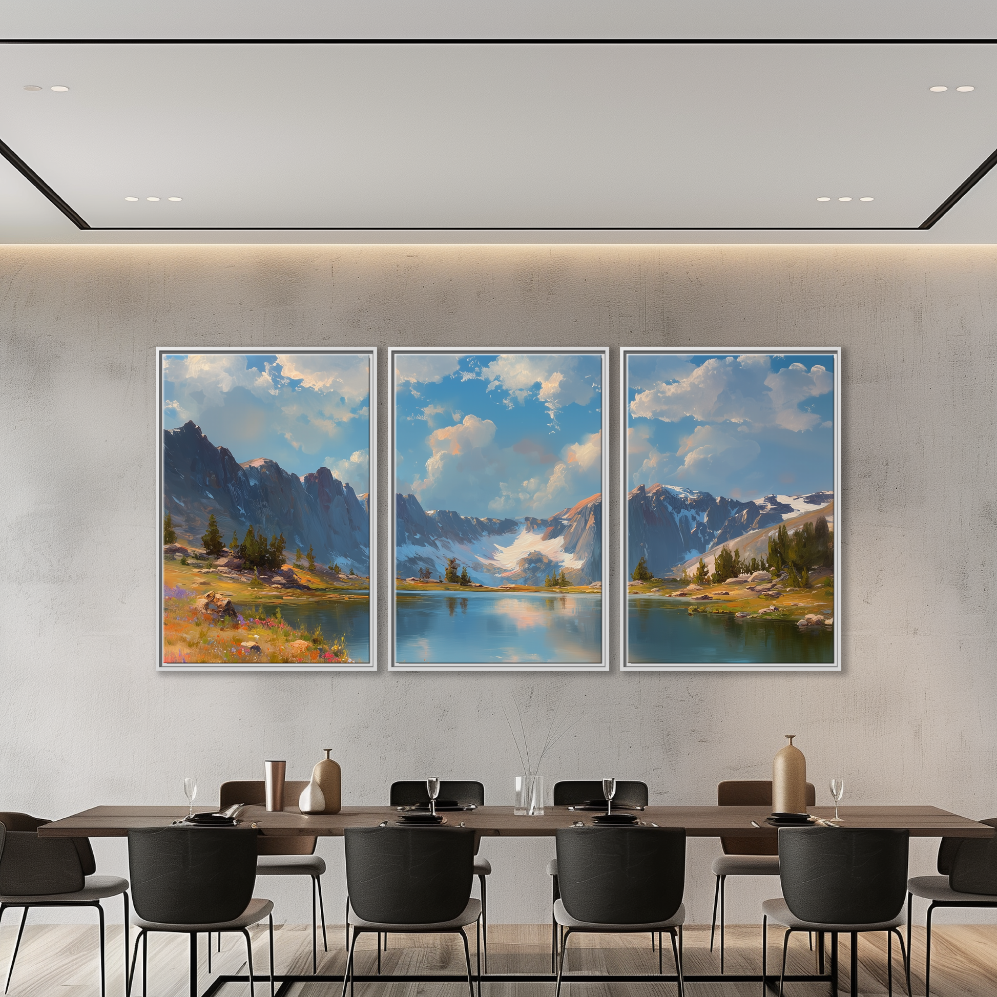 Immerse yourself in the serene beauty of the Snowy Range with this exquisite canvas wall art, capturing the essence of Wyoming landscape in stunning detail. Inspired by the Medicine Bow Alpine wilderness, this piece brings to life a tranquil mountain lake surrounded by jagged granite cliffs and vibrant wildflower meadows. Perfect for those who cherish glacier carved land and seek a nature gift idea that evokes peaceful reflections and alpine splendor.