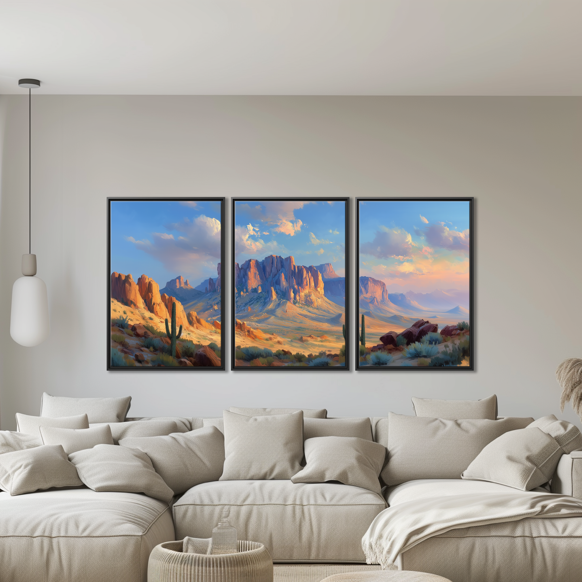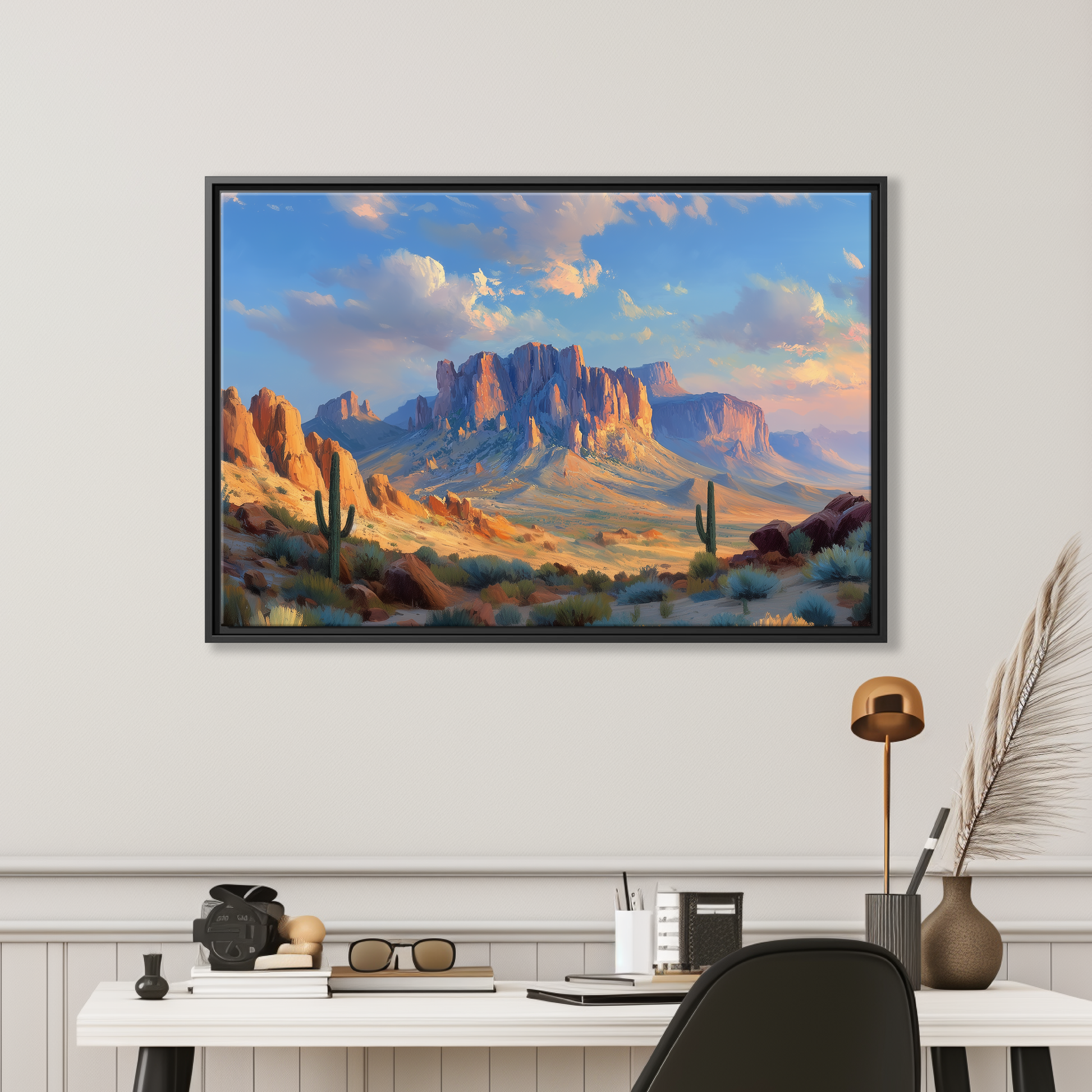 Bring Arizona’s legendary Superstition Mountains into your home with this striking print. Featuring rugged desert peaks and dramatic skies, it’s perfect for travelers and Southwest landscape enthusiasts. A bold, timeless piece for any space.