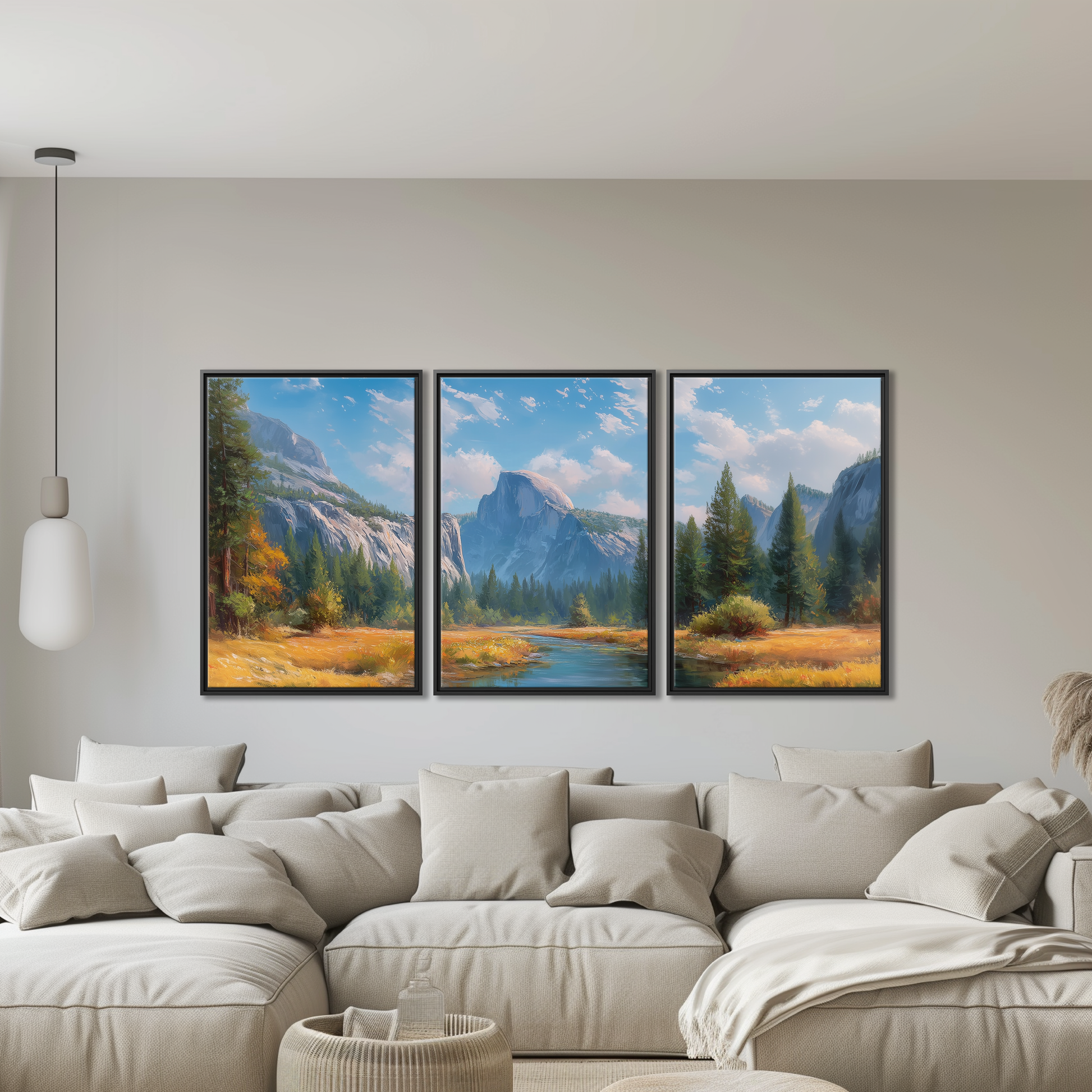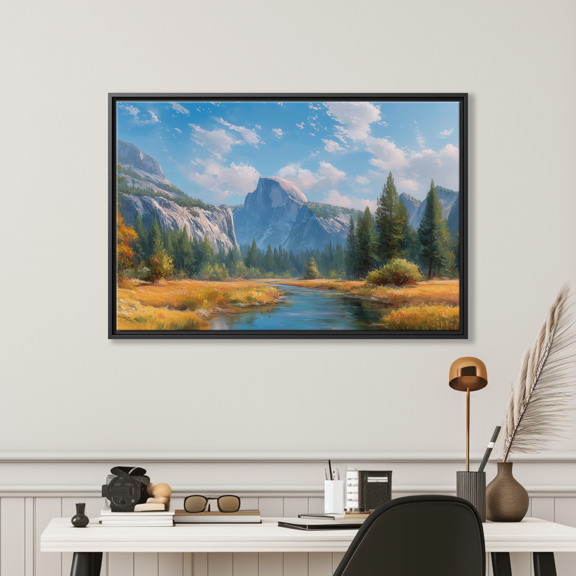 Showcase California’s iconic Yosemite Valley with this national park print. Featuring granite cliffs, waterfalls, and towering peaks, it’s perfect for travelers, hikers, and anyone inspired by dramatic landscapes. A bold design for your home or office.